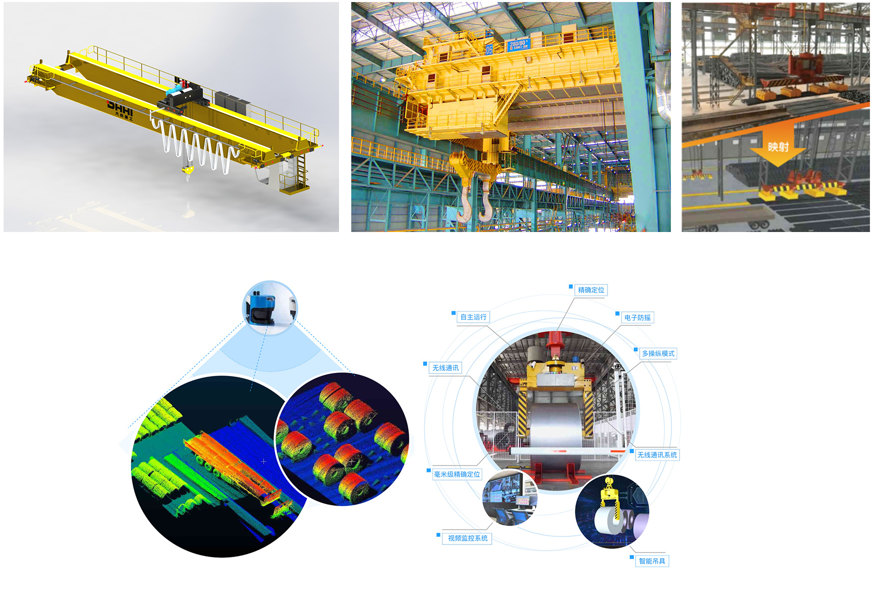 大連重工致力于鋼水罐、鐵水罐、鋼卷、鋼板、方坯、鋼錠、棒線材、煤、礦等物料無(wú)人化搬運(yùn)系統(tǒng)研發(fā),可為客戶提供包含機(jī)器視覺(jué)、智能算法、故障診斷、壽命管理、遠(yuǎn)程監(jiān)控與運(yùn)維、智能起重設(shè)備、智能地面輸送設(shè)備等子系統(tǒng)及設(shè)備的整體解決方案。